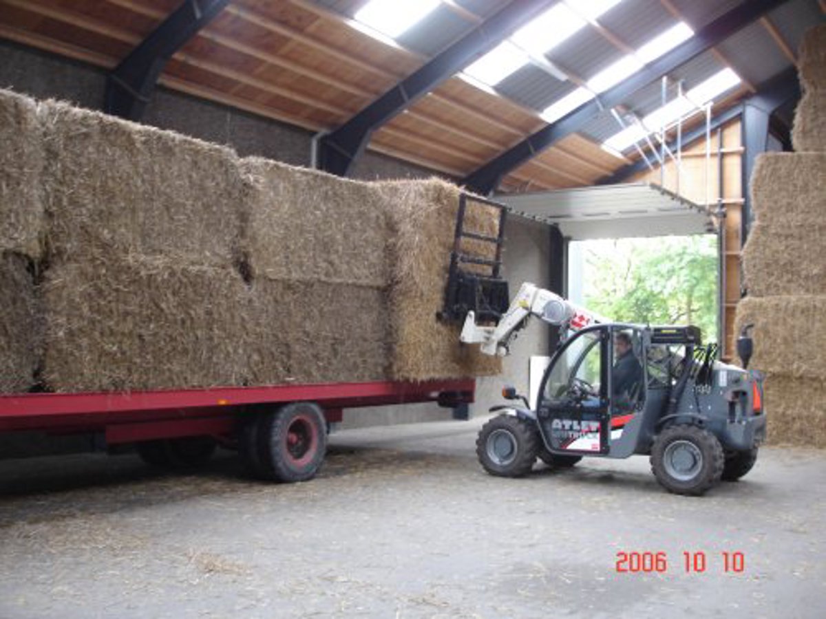 Halmballerne stables nu i den store hal, som kan rumme ca. 1200 baller - som dækker ca. 3 ugers forbrug