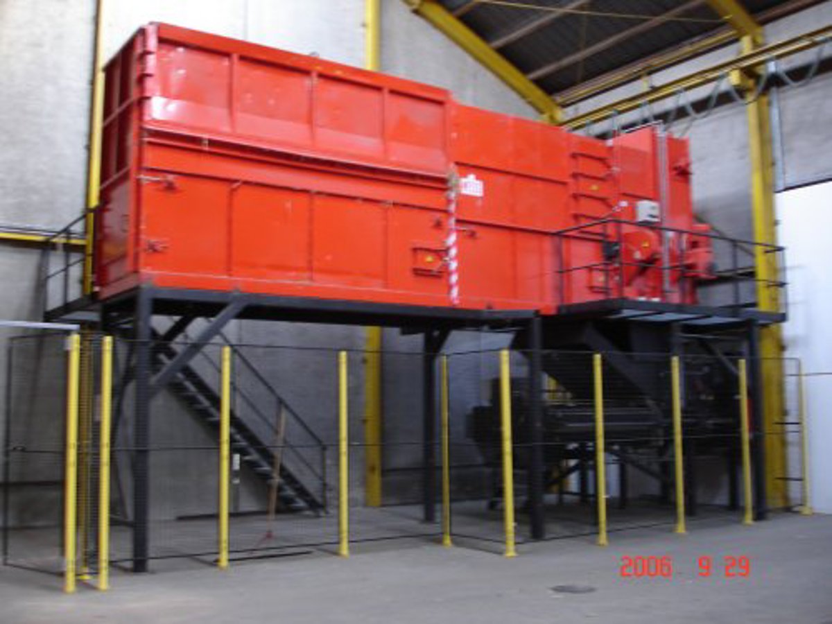 Halmen placeres i den forreste del af halmfyret, hvor ballerne rives op inden de skubbes ind i fyret.