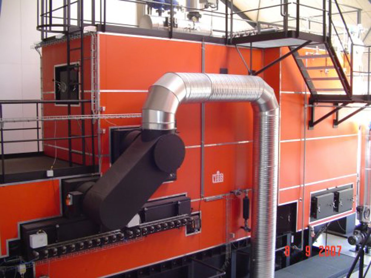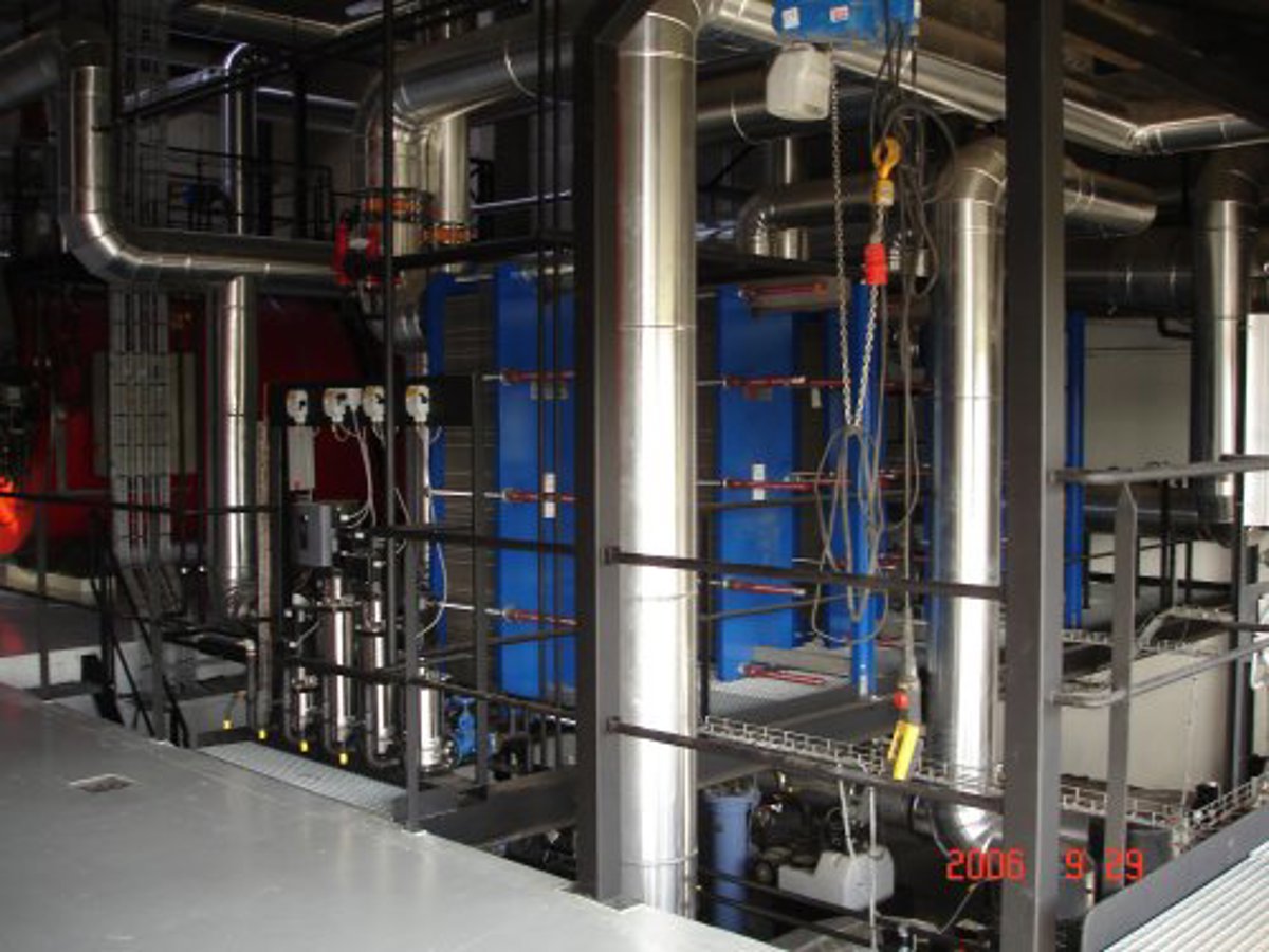 Her forlader varmen så værket gennem varmeveksleranlægget, som samtidig adskiller kedelvandet med vandet